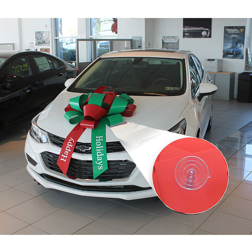 Giant 30-inch Suction Cup Message Bow - Happy Holidays