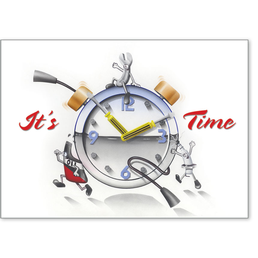 These fun, colorful designs will brighten anyone's day! Use them to remind customers of needed service. Choose from the standard messages for the back at NO additional charge!