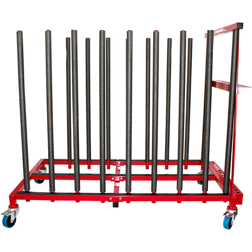 Replacing the need for separate hood and panel caddies, our new design has removable support rods allowing for the right size, when you need it. When not in use, the support rods can be conveniently placed in the built in storage rack. The heavy-duty design is strong enough to handle any automotive panel. The full swivel, 4" locking casters enable the Adjustable Panel Caddy to easily move over the many surfaces within a shop.