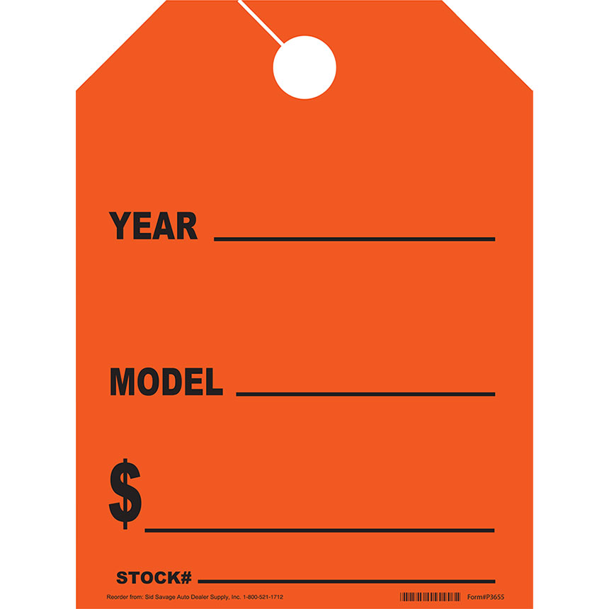 If you want to be heard, then speak up with a batch of these vibrant tags. Red "Year-Model" Fluorescent Rear View Mirror Tags are sold in packs of 50. Mirror Tags are 8.5"W x 11.5"H.
