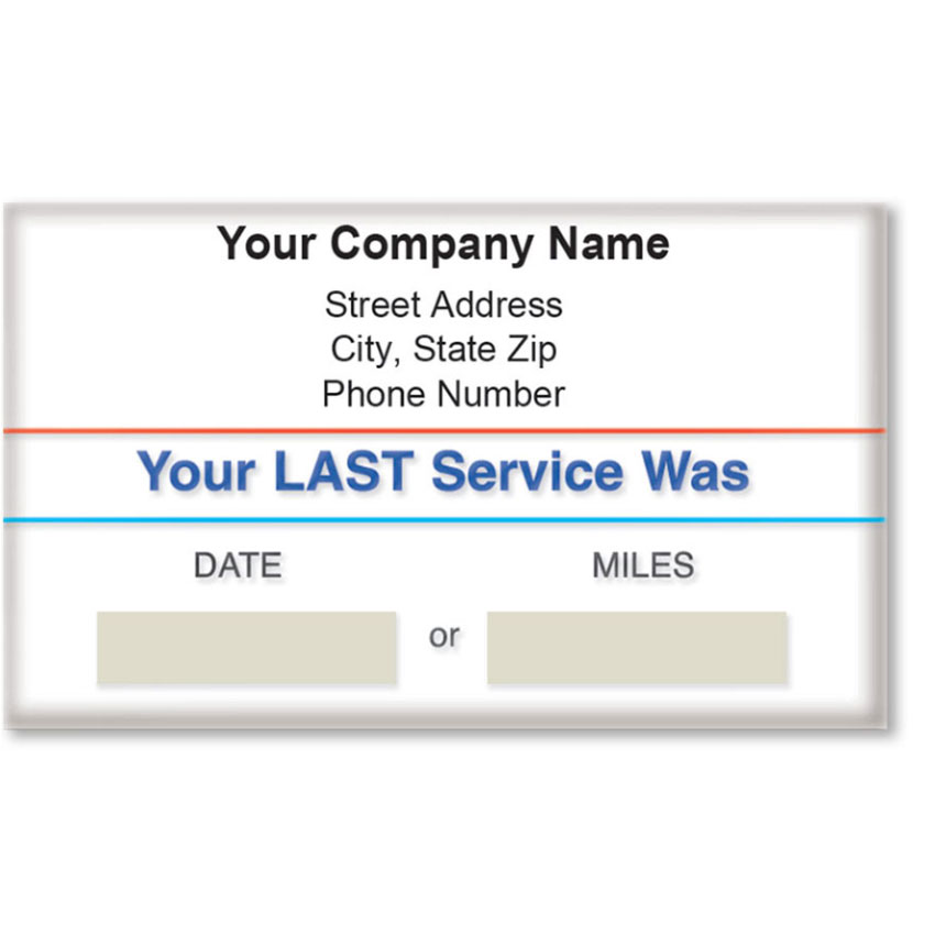 Our best-selling standard service stickers are imprinted with your company name, address, and phone number. Stickers have blocks for writing in.